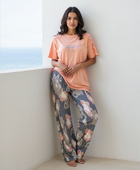 Red CottonGirls' Winter Pajama Set With Charleston Sweatpants - Kashmir