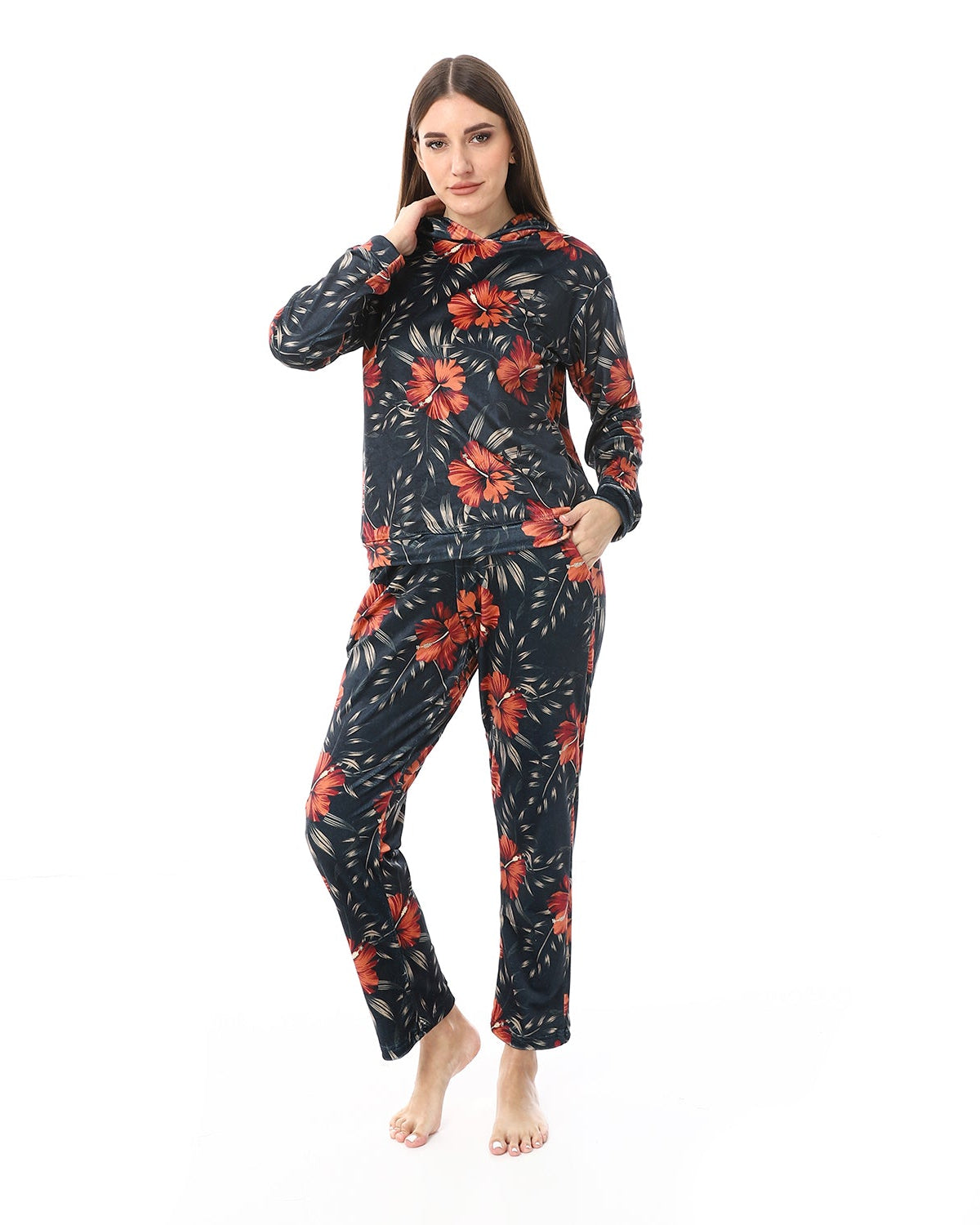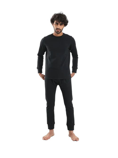 RedCottonGirls' Winter Pajama Set – Off-White Hoodie and Black Wide-Leg Pants