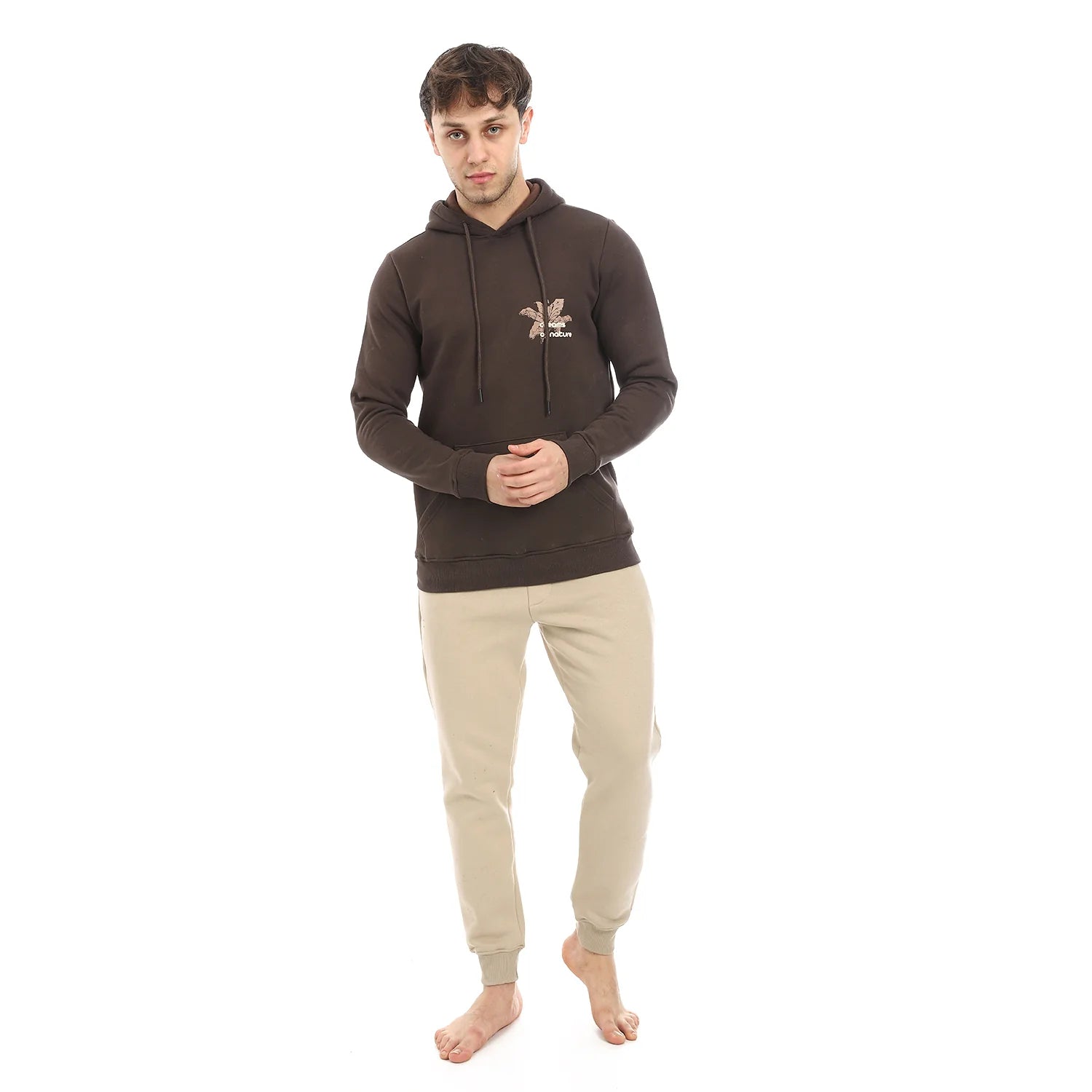 Red CottonMen’s Beige and Black Milton Hoodie – Stylish Fleece-Lined Sweatshirt with “Breathe” Print